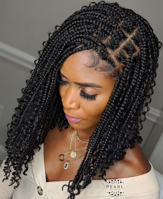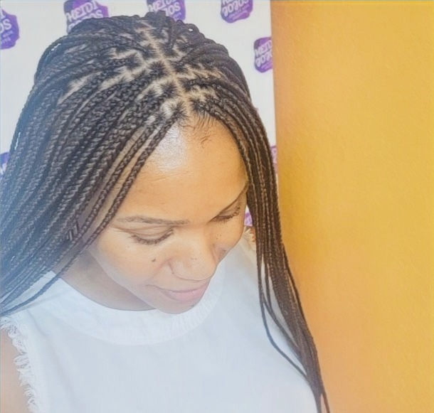 A modern twist on traditional box braids, characterized by a sleek and natural-looking finish.